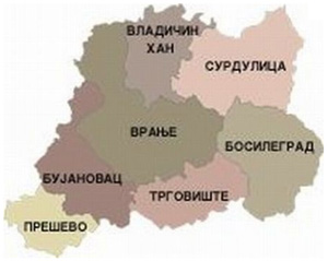 Сърбия, в Пчинска област, до българо-македонската граница.На север граничи с